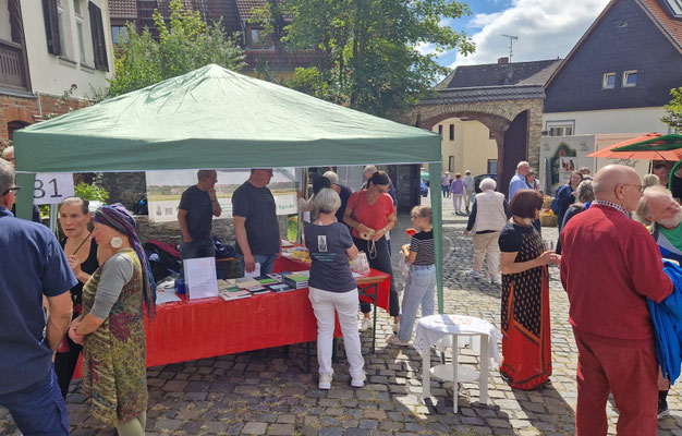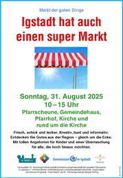 Alle Hände voll zu tun hatten die Vorstandsmitglieder des Heimat- und Geschichtsvereins, die am Markttag mit verschiedenen Aufgaben gut beschäftigt waren. Ab 10 Uhr, dem offiziellen Marktbeginn, wurde das Glücksrad betreut, die historischen Ansichten von Igstadt erläutert, der Stand selbst mit den Exponaten, allen voran die beliebten Nostalgie-Magnete, musste ohne Pause bis 15 Uhr besetzt sein. Und es musste erstmals eine sportliche Aufgabe bewältigt werden: die Kirchturmbesteigung. Hier wechselten sich Martina und Stephan Pflume sowie Michael Weidenfeller ab und führten in zwei Zeitfenstern im 15-Minuten-Takt ca.120 Personen in den Glockenturm. Das Wetter war einfach himmlisch gut an dem Markttag, was von den Organisatorinnen schmunzelnd mit dem Programmpunkt "Kirchturmbesteigung" in Verbindung gebracht wurde. Es war der gute Draht "nach oben". Ein schöner regionaler Markt, der sehr gut besucht wurde, auch von vielen Gästen aus den benachbarten Vororten. Die Vielfalt der Produkte, ob Lebensmittel, Kreatives oder Informatives, aus der Region für die Region überzeugten.